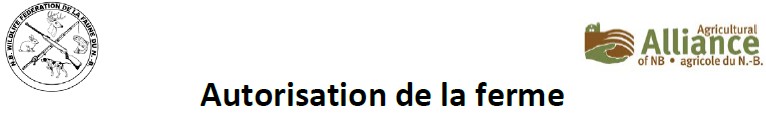 En collaboration avec l’Alliance agricole du Nouveau-Brunswick, la Fédération de la faune du Nouveau-Brunswick a élaboré un formulaire d’autorisation universel pour l’accès aux terres agricoles de la province. Ce modèle peut être utilisé tel quel ou personnalisé pour y ajouter des conditions supplémentaires répondant aux besoins du propriétaire de la ferme et de l’accès.